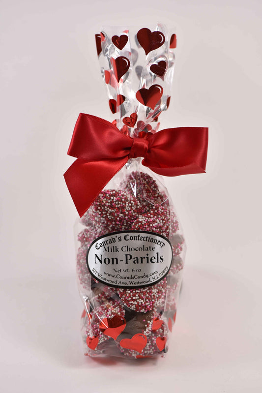 Milk Chocolate Valentine's Day Non-Pareils- 8 oz Fancy bag