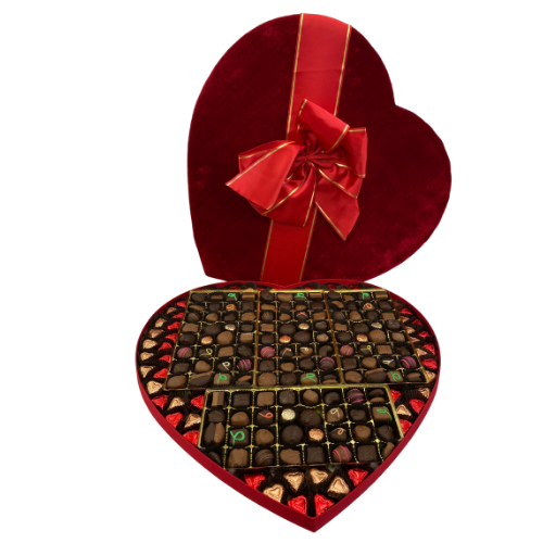 Heart #80. Milk and Dark Chocolate in a Red Heart Shaped Box. Net weight approximately 5.5 lbs.