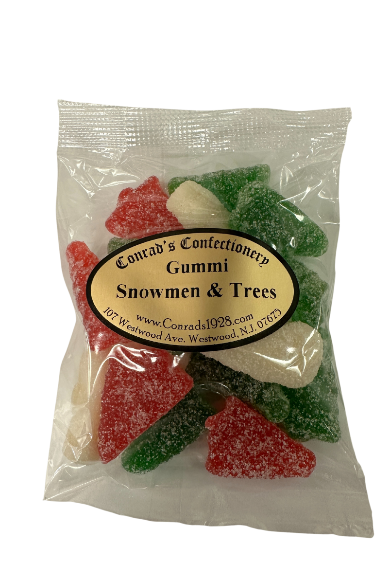 4 ounce package of sugar sanded Gummi Snowmen and Trees