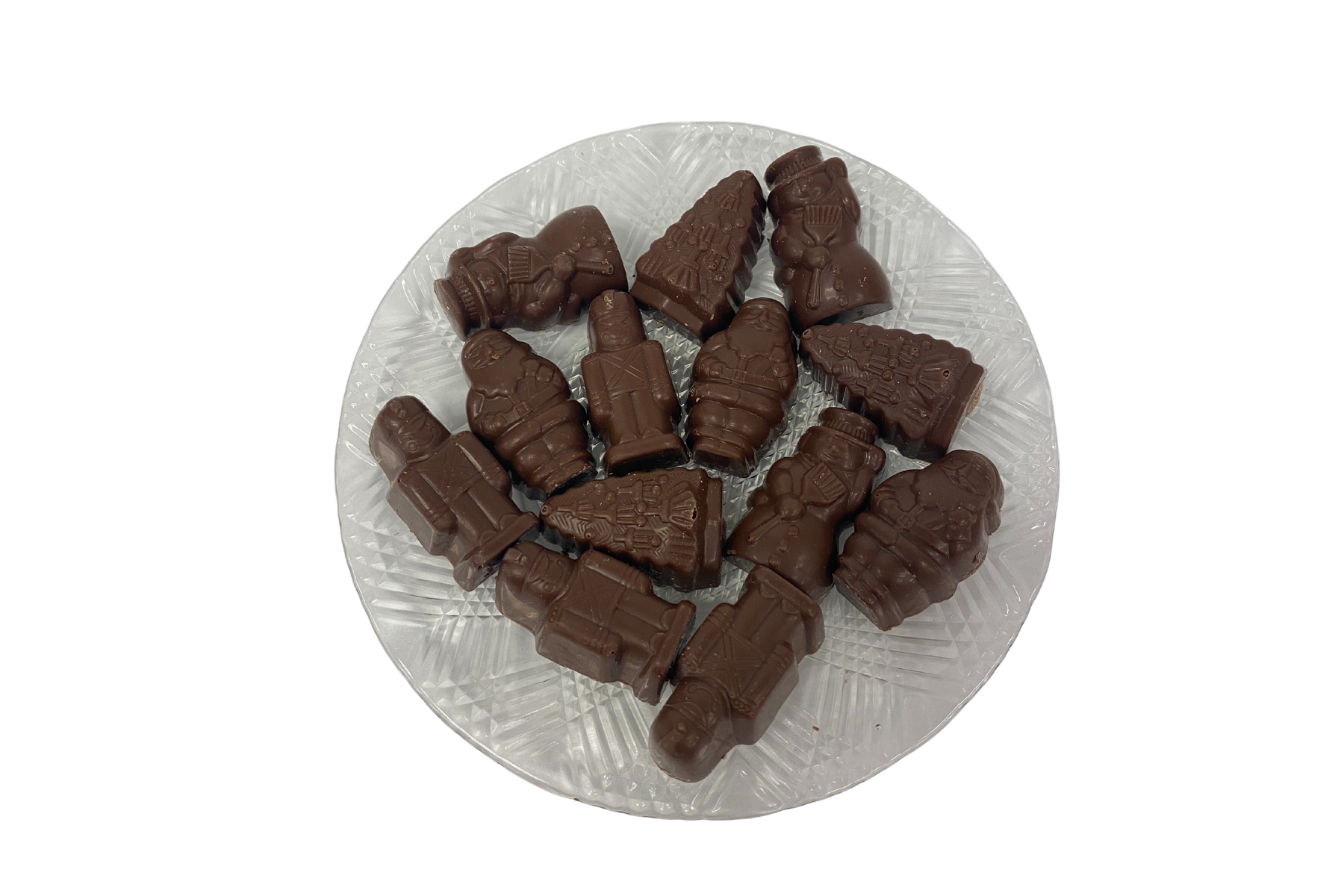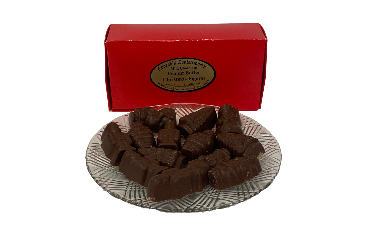Half pound box of Milk Chocolate and Peanut Butter Christmas Figures.